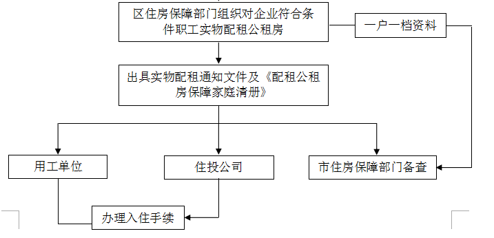 区住建局根据各乡镇、社区服务中心、以单位名义申报的企业申报家庭审批情况将房源分配到各申报单位,各申报单位自行分配后将分配明细返区住建局,由区住建局下发入住通知。
